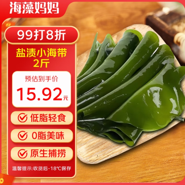3.9元包邮!海藻妈妈 盐渍小海带 2斤