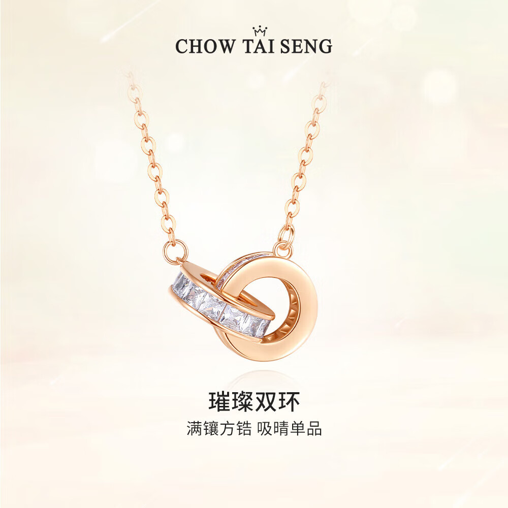 ¥371 周大生环环相扣项链女轻奢小众双环锁骨链生日礼物送女友 421
