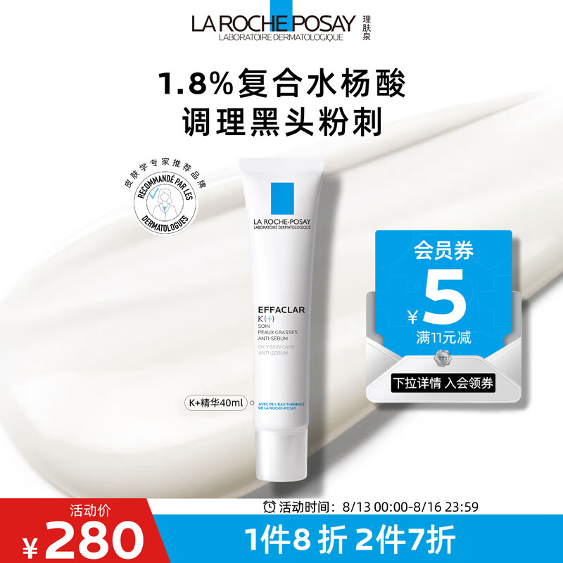 ¥260 理肤泉K乳40ml 水杨酸控油清洁去黑头粉刺闭口收缩毛孔祛痘护肤品送男友 280