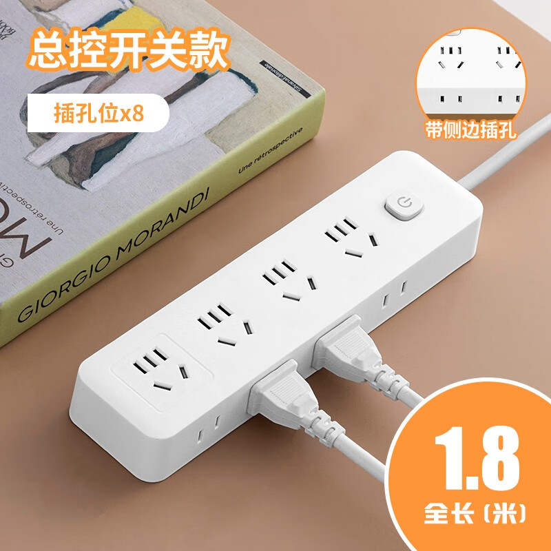 ¥18.8 达聚科柔性带线插座转换器插排多孔家用USB充电多功能一转多电源接线板USB充电安全门适用于卧室 八插位总控【1.8米】 48.8