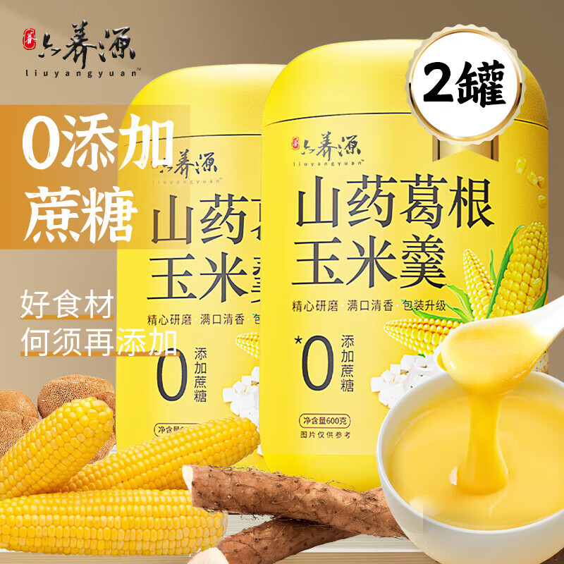¥37.9 六养源 山药葛根玉米羹 营养早餐代餐粉即食冲饮谷物玉米糊 【品质升级】600g*2罐(净含量) 57.9