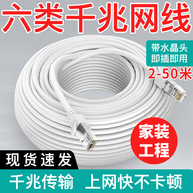 ¥16.8 奔肯超六类网线千兆高速CAT6类家用网络连接线超6类电脑宽带监控路由器跳线10米/20米超长成品网线 6类千兆网线【带水晶头】-白色 10米 18.8