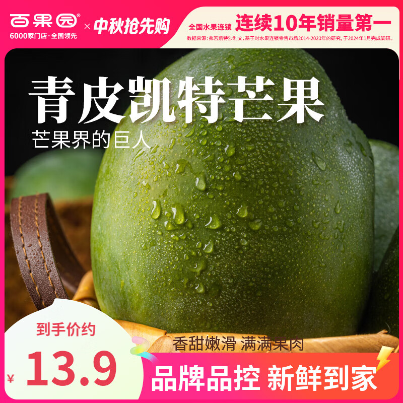 ¥10.9 PAGODA百果园店 四川凯特芒果现摘青皮当季新鲜热带水果整箱 净重3斤 单果200g+ 13.9
