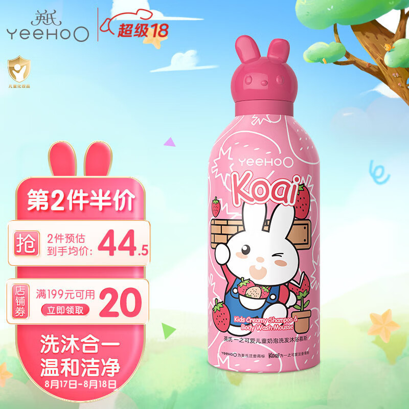 ¥56 英氏儿童沐浴露洗发水二合一婴儿宝宝洗发沐浴露小奶泡草莓味350ml 66