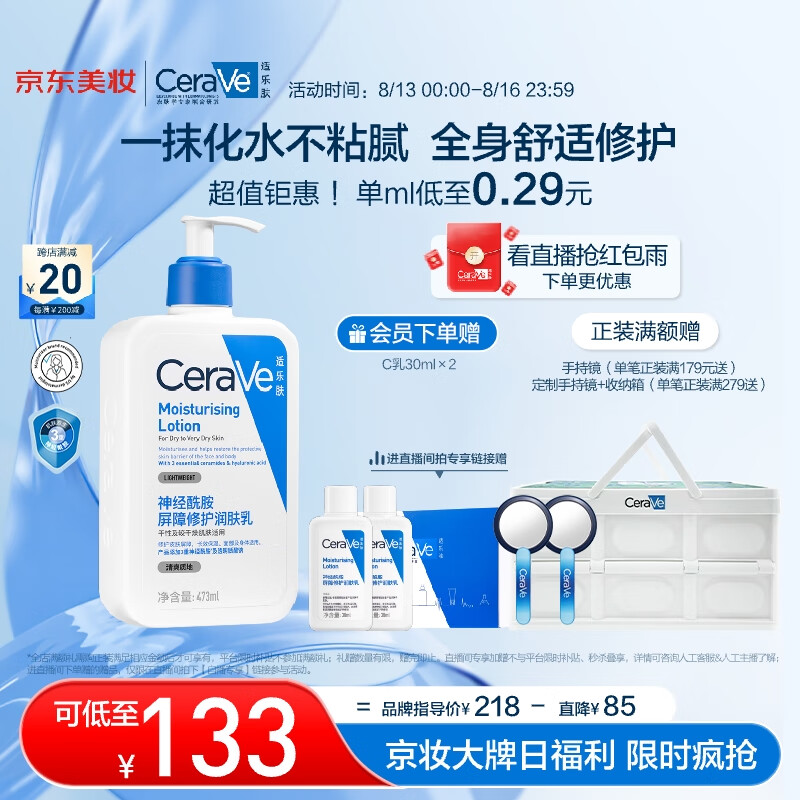 ¥128 适乐肤(CeraVe)保湿润肤乳473ml(修护屏障乳液面霜身体乳C乳男女士护肤品礼物) 133