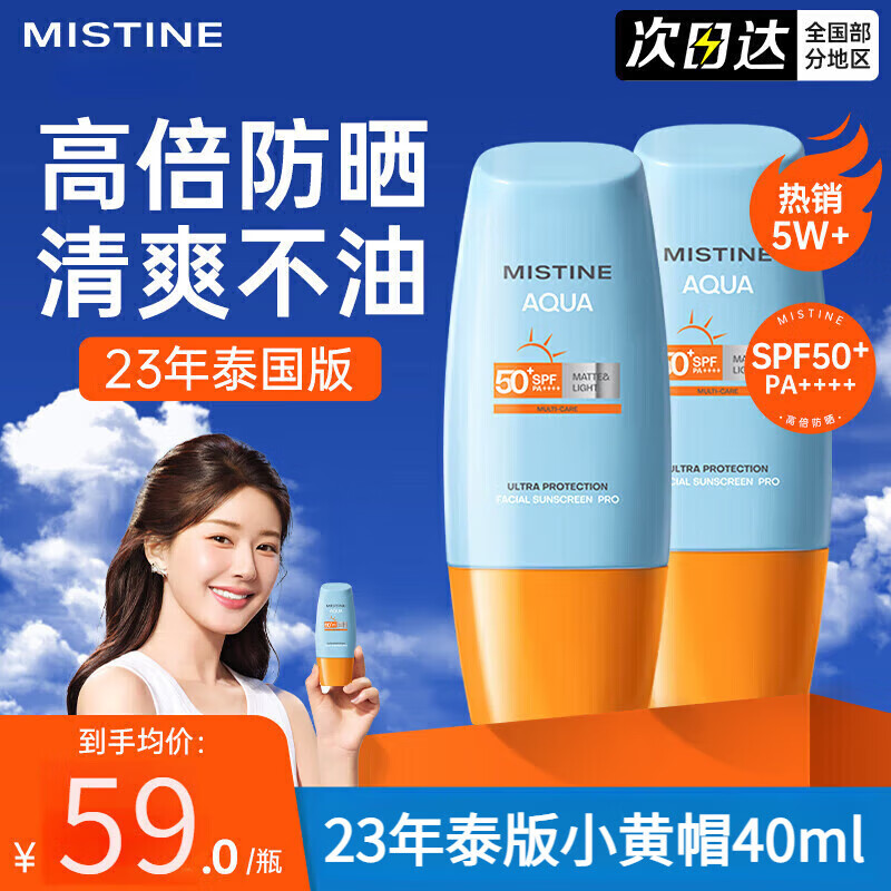 ¥45 蜜丝婷泰国版小黄帽防晒霜男女SPF50+面部水润军训户外隔离乳 2支装【防伪可查】 118