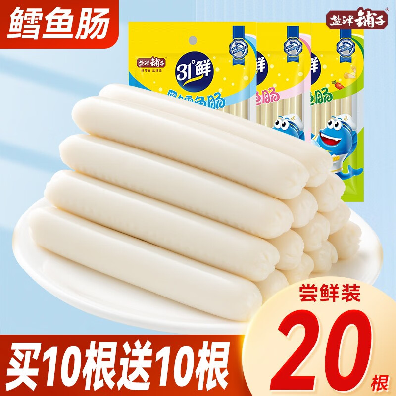 ¥8.9 盐津铺子 鳕鱼肠即食鱼肉肠火腿肠休闲海味零食 【买10根送10根】混合味200g 18.9