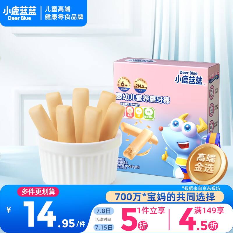 ¥14.95 小鹿蓝蓝婴幼儿磨牙棒原味64g宝宝零食 营养辅食 磨牙棒(6+~36个月适用) 29.9