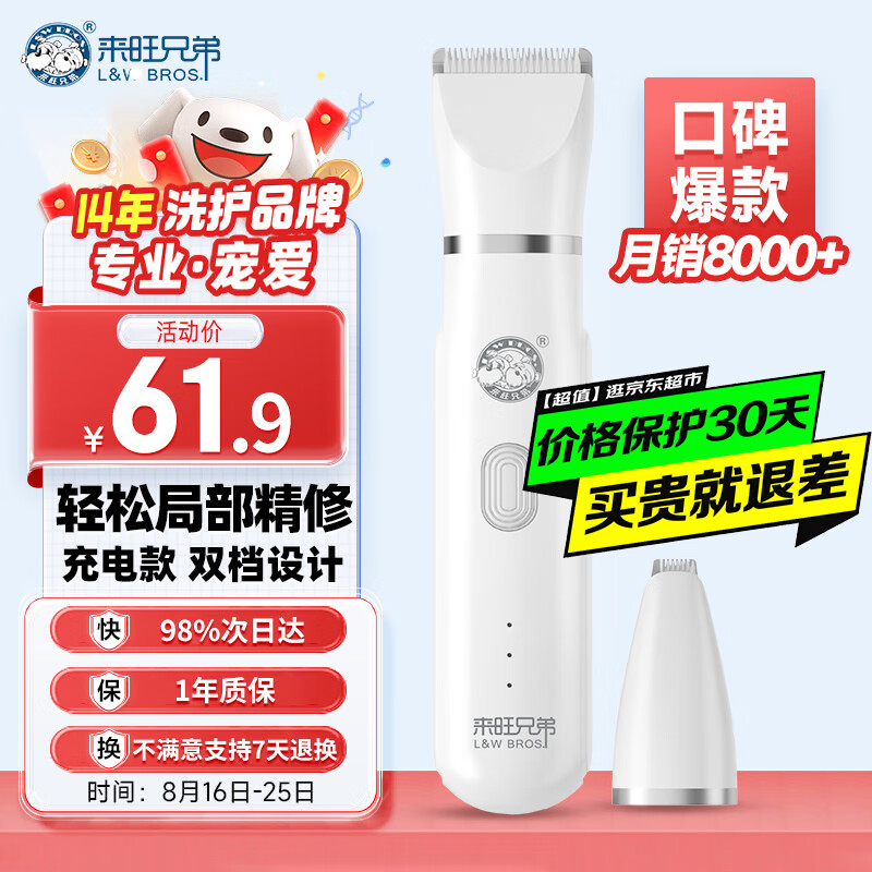 ¥56.9 来旺兄弟宠物狗狗剃毛器猫咪剃脚毛修剪器狗推子剪毛器二合一充电款 61.9