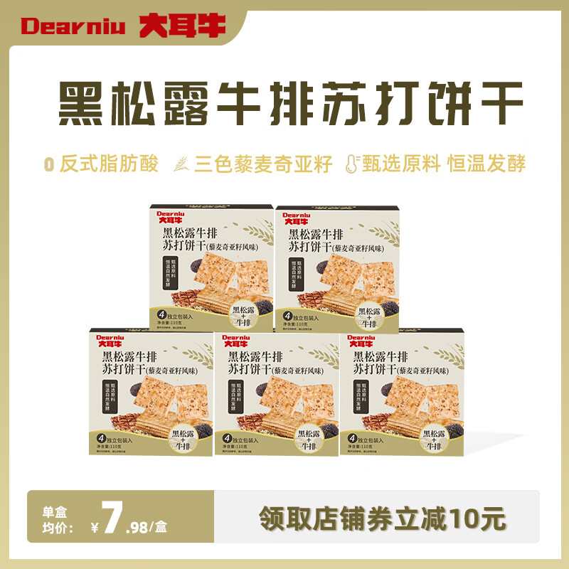 ¥16.9 大耳牛黑松露牛排苏打饼干(藜麦奇亚籽风味)办公室休闲零食独立小包装 【5盒装】110g*5 49.9