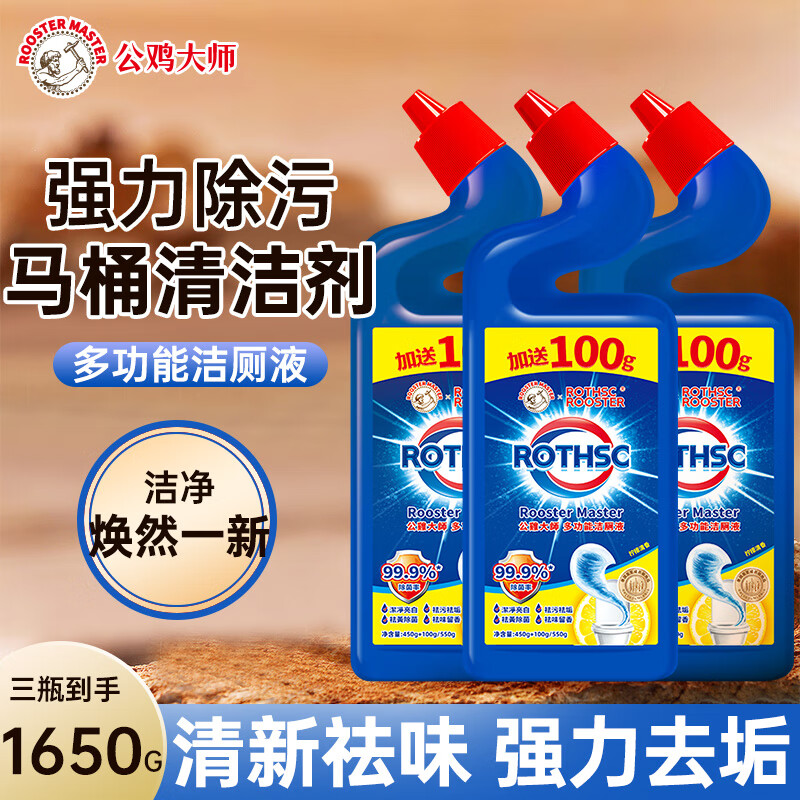 ¥19.9 公鸡大师洁厕灵除臭除菌去异味黄渍装强力除污马桶清洁剂清香型洁厕液550g 8倍除垢【家庭装】 550g 3瓶 29.9
