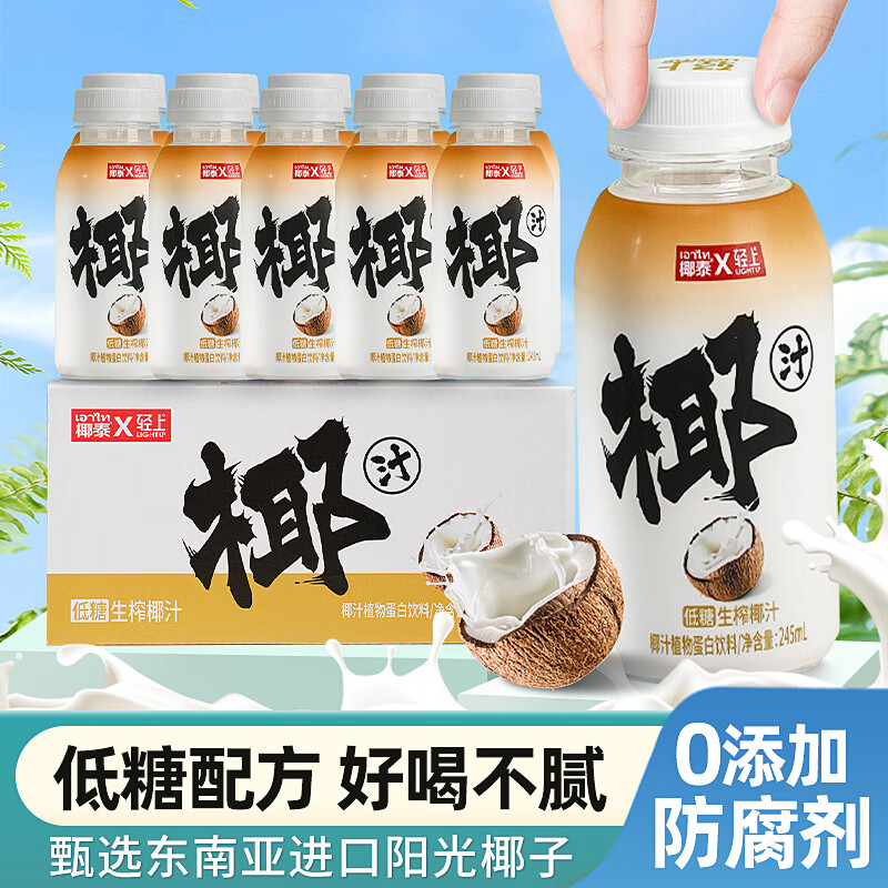 ¥9.9 罗伯克轻上生椰汁丝绒拿铁即饮咖啡男女学生熬夜丝滑奶咖饮料 低糖生榨椰汁245ml*3瓶 12.9