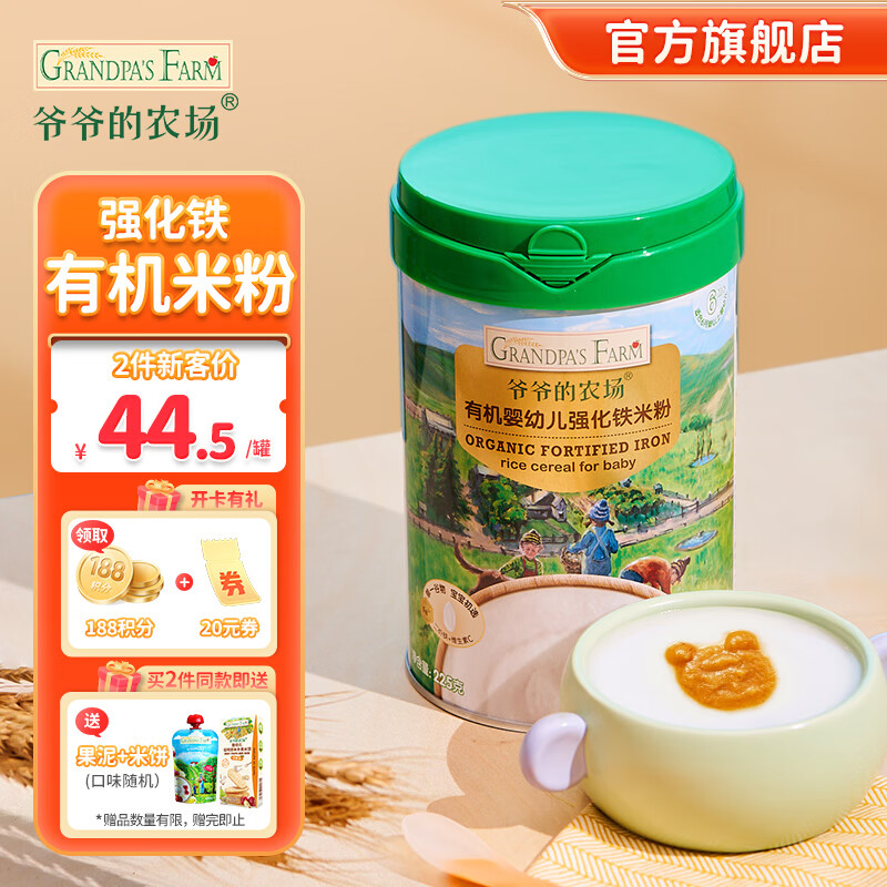 ¥63 爷爷的农场婴幼儿高铁有机铁米粉 强化钙铁锌宝宝辅食米糊无添加 有机大米粉(初添加) 225g 1罐 68