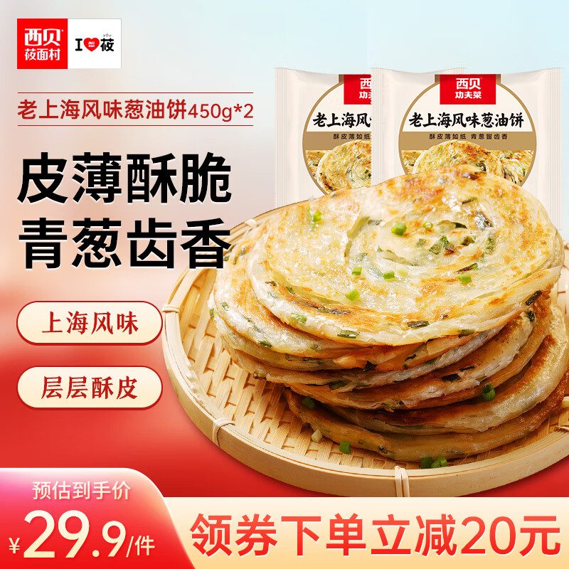 ¥29.9 西贝莜面村葱油饼900g 10片装 450g*2 早餐半成品手抓饼 生鲜面点 49.9