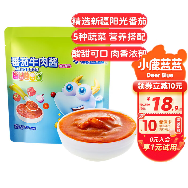 ¥18.9 小鹿蓝蓝番茄牛肉酱辅食佐餐宝宝拌酱儿童意面调料调味料可拌面拌粥180g 28.9