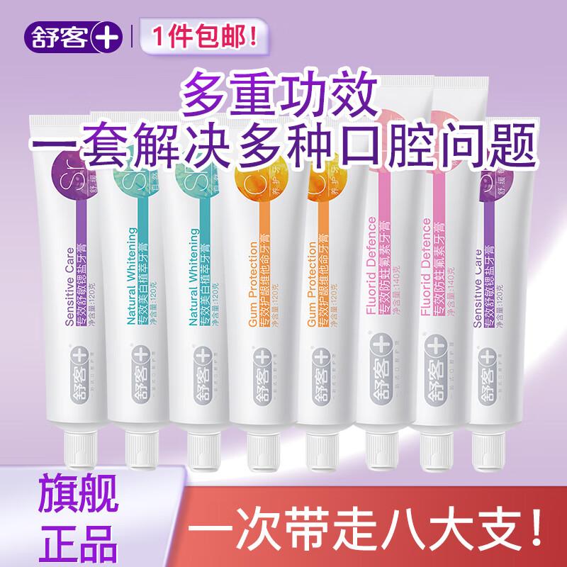 ¥34.9 舒客含氟美白/舒敏/防蛀/维c牙膏8支装 全正装 家庭囤货共1000g 多功效8支装 59.9