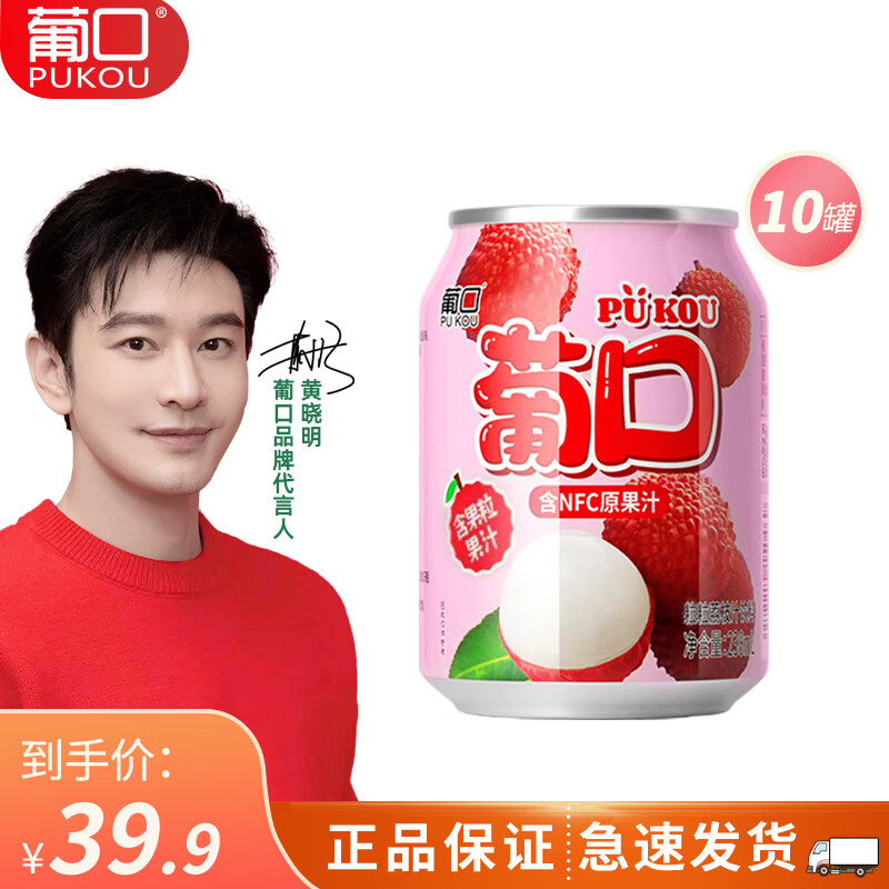 ¥19.9 葡口(pukou)新品粒粒含NFC果汁饮料混搭口味238ml整箱电商款 荔枝 10罐/箱 39.9