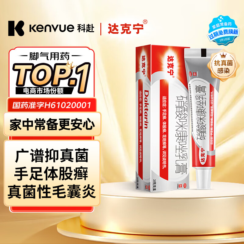 ¥21.1 达克宁硝酸咪康唑乳膏20g治脚气药止痒脱皮烂脚丫真菌感染止痒烂脚丫药脱皮糜烂脚趾缝烂痒专用药咪康唑散 25.1