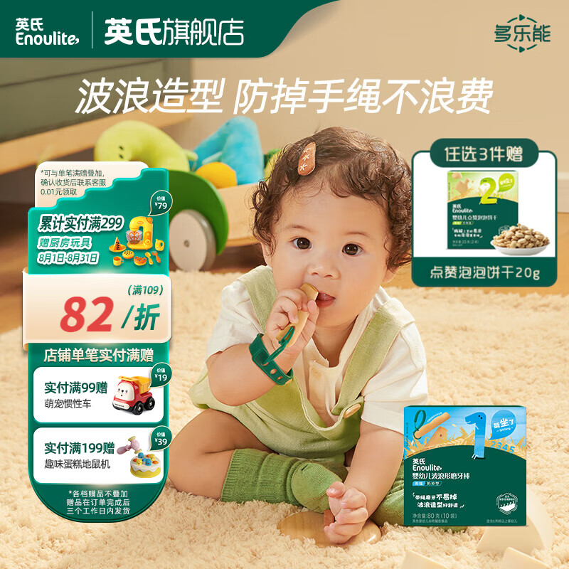 ¥19.84 英氏磨牙棒婴儿6个月以上口欲期高钙波浪造型抗压 【新品】打孔磨牙棒原味80g 22.8