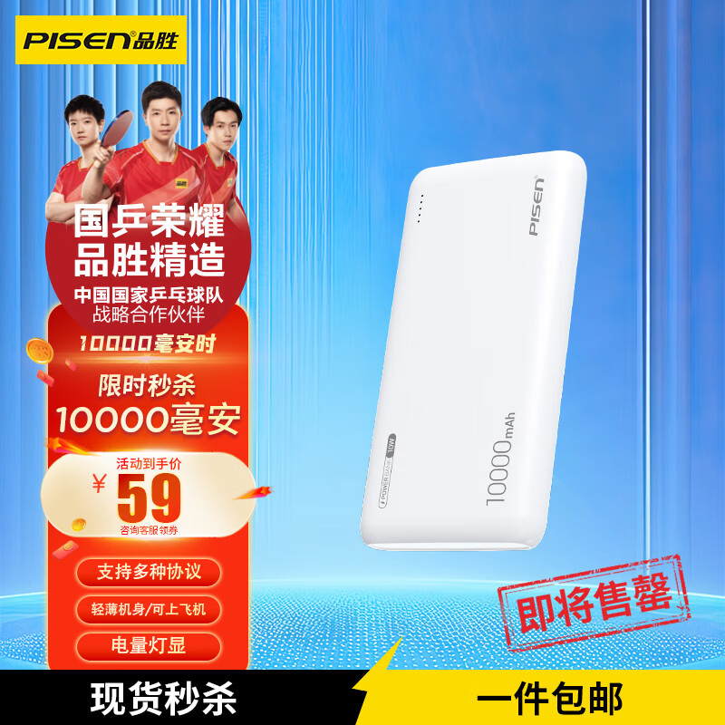 ¥59 品胜充电宝10000毫安超薄小巧便携可上飞机高铁10W 云初白/10W充电宝10000(TP-D094) 105