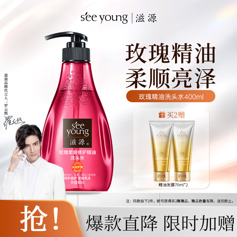 ¥48 滋源玫瑰精油柔顺修护洗发水无硅油润泽养护柔亮顺滑男女洗头水400ml 53
