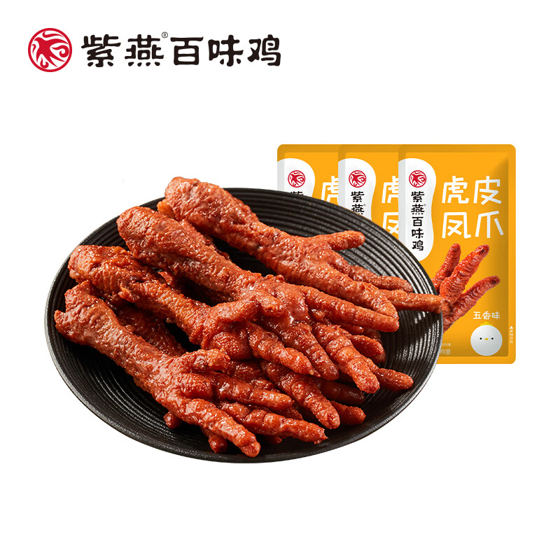 ¥24.9 紫燕百味鸡虎皮凤爪15根鸡爪卤鸡爪休闲零食解馋即食熟食独立包装真空散称 虎皮凤爪五香味 15根 39.9