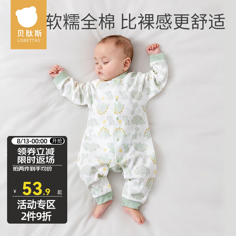 ¥39.9 贝肽斯婴儿连体衣四季新生儿衣服春秋宝宝打底纯棉长袖哈衣室内爬行服 趣味小恐龙-四季 80码 59.9