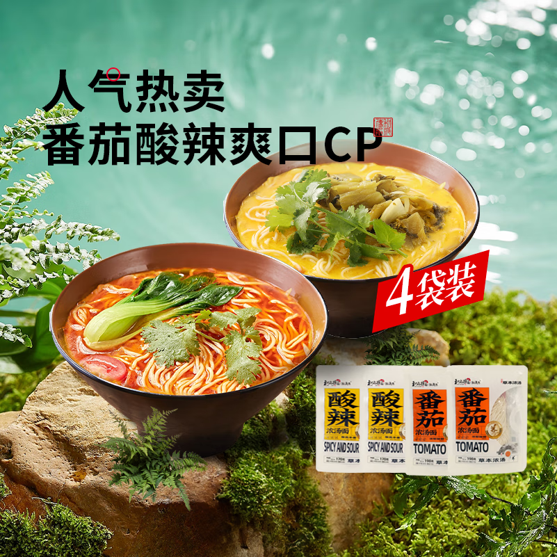 ¥39.9 和府捞面浓汤鲜煮面4袋 光汤速食面方便拉面番茄酸辣面条cp 番茄汤*4【无肉包】 63.9