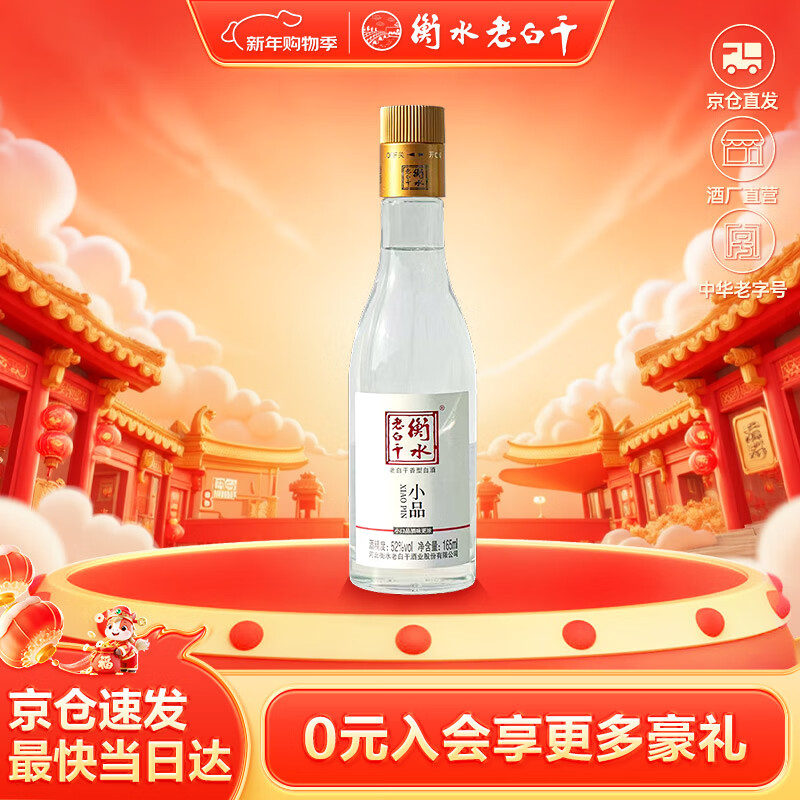 【1元尝鲜】衡水老白干小品系列白酒52度165ml 1元试用装 纯粮酿造