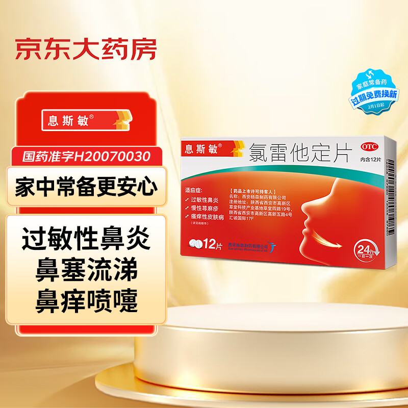 ¥31.9 息斯敏氯雷他定片12片鼻炎过敏药缓解过敏性鼻炎鼻塞结膜炎皮肤过敏瘙痒慢性荨麻疹儿童鼻炎抗过敏药喷嚏流涕 38.9