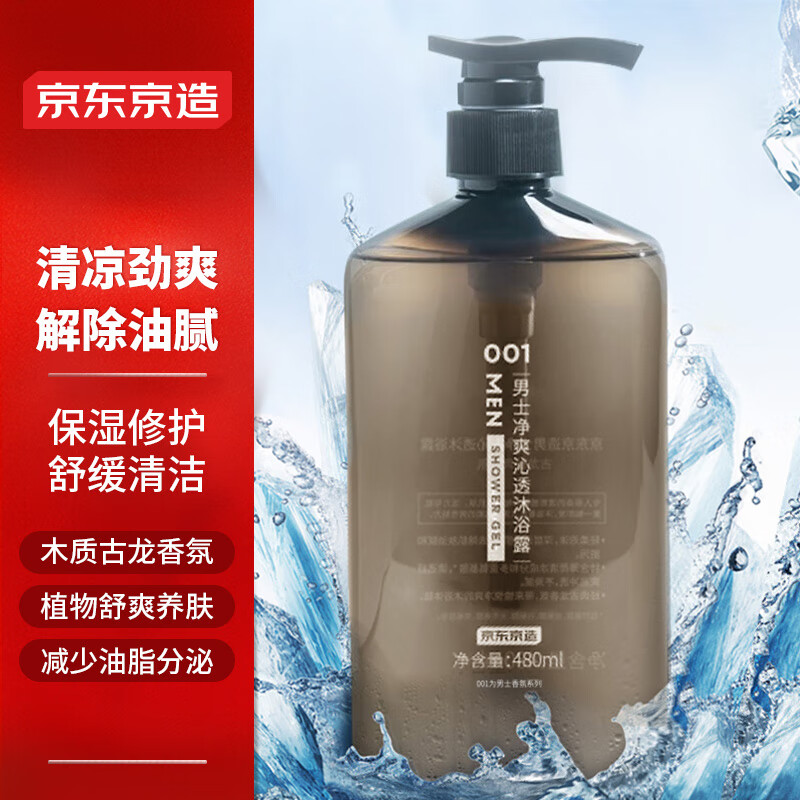 ¥23.9 京东京造 001蔚蓝古龙香氛 男士清凉劲爽沐浴露480mL 木质芳香薄荷醇 29.9