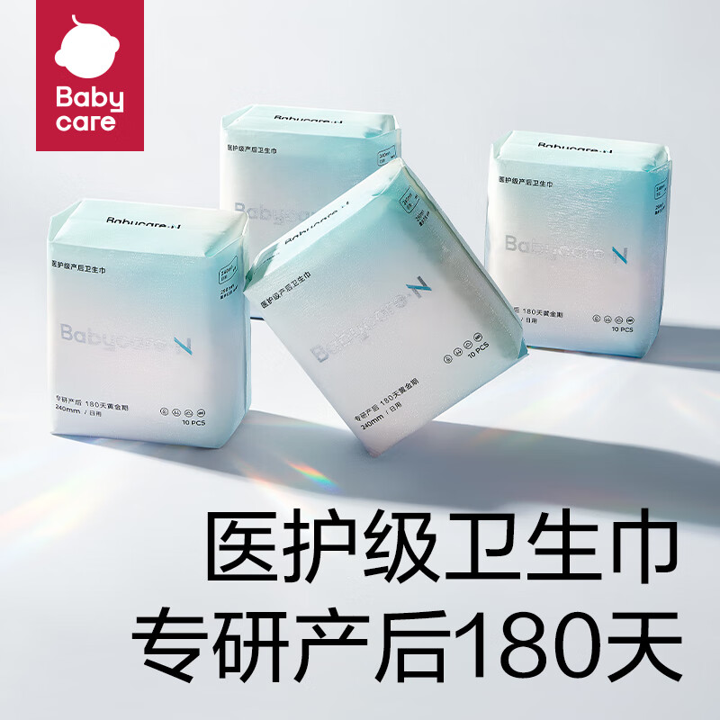 ¥42.9 babycare卫生巾小n卫生巾医护级女经期产妇姨妈巾极薄干爽透气 抑菌卫生巾 日用 240mm 40片 【4包】 67.9