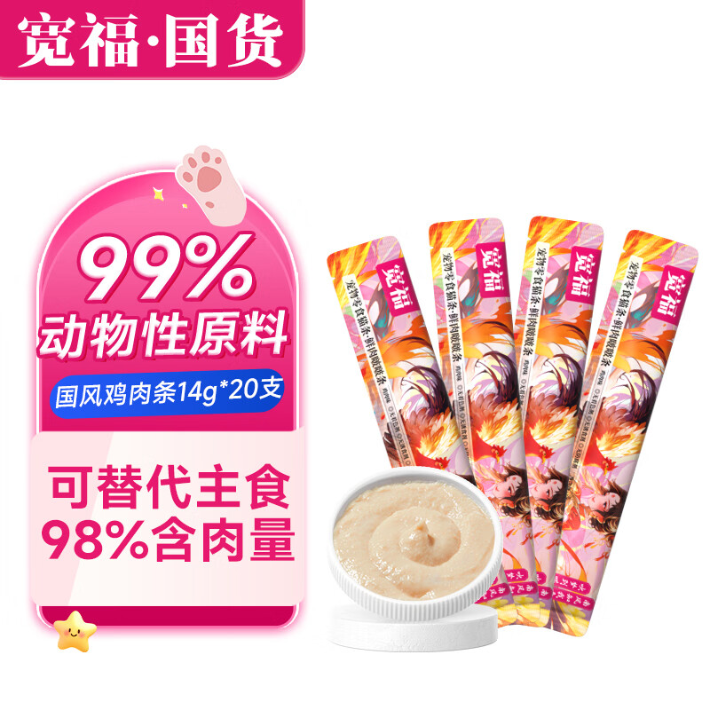 ¥5.5 宽福猫条猫零食营养条成猫幼猫湿粮妙鲜包鲜肉猫条增肥猫咪营养 国风鸡肉条20支 19.5