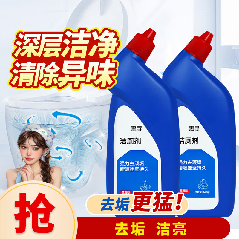 ¥9.9 惠寻马桶清洁剂 啫喱洁厕灵 花香型洁厕液 除垢除菌去除异味 马桶清洗剂500g*2 19.9