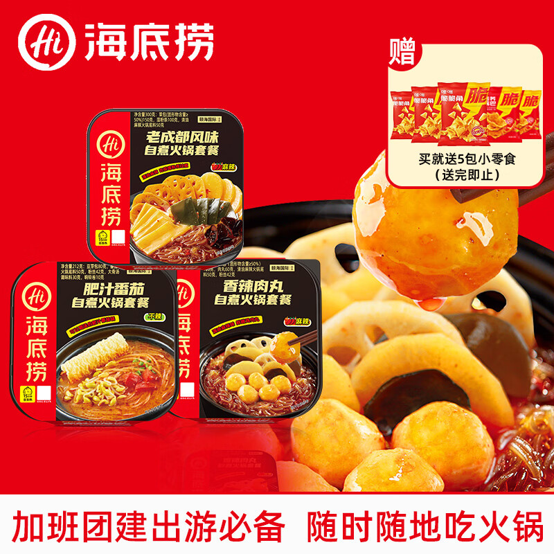 ¥32.7 海底捞 自热火锅番茄小酥肉方便速食免煮夜宵即食零食露营加班懒人自助 肥汁番茄+老成都+香辣肉丸 44.7