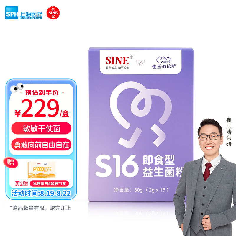¥199 SINE信谊崔玉涛亲研S16益生菌2g*15条 适合敏敏喷嚏儿童成人益生菌活菌 279