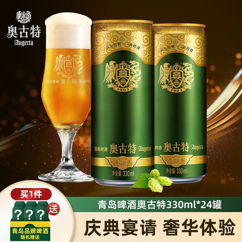 ¥139 奥古特(Augerta)青岛啤酒奥古特啤酒 泡沫丰富麦香浓郁 330mL 24罐 整箱装 159