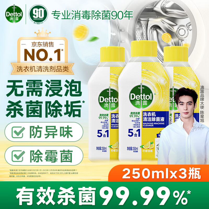 ¥68.7 滴露洗衣机清洗剂强力除垢杀菌消毒液滚筒机槽专用深度清洁剂非爆氧粉 【无需浸泡】柠檬250ml*3瓶 74.7