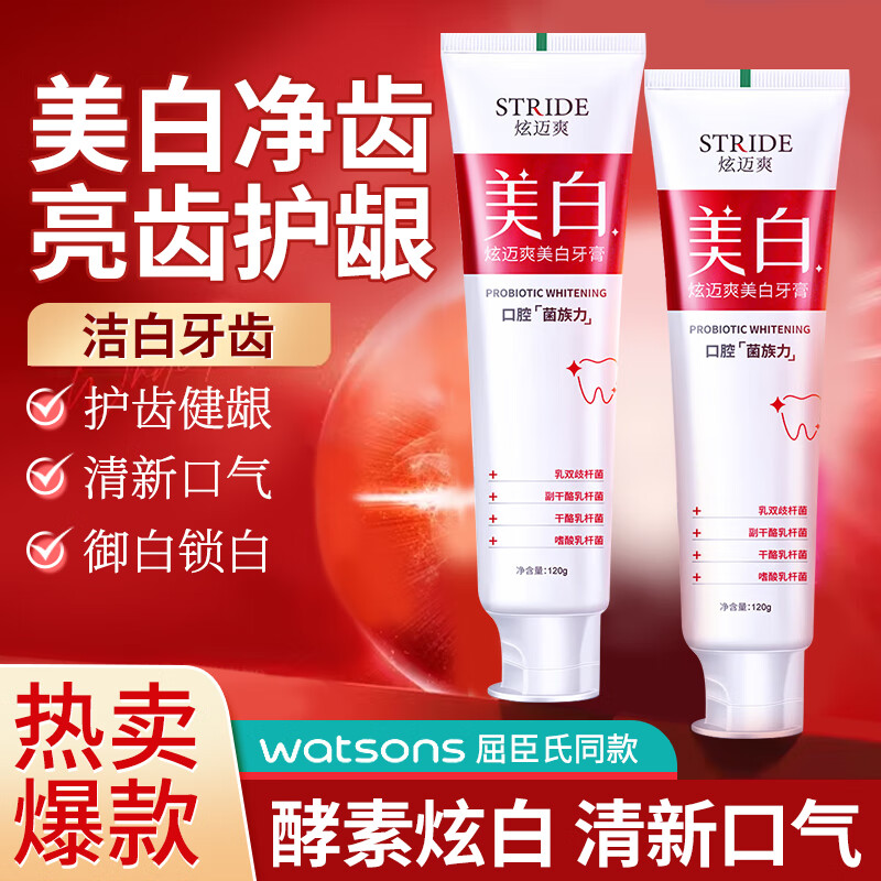 ¥9.9 炫迈爽口腔益生菌牙膏sp-4美亮白牙齿护齿健龈美白牙膏减口气臭牙黄牙渍 益生菌美白牙膏120g-2盒 39.9