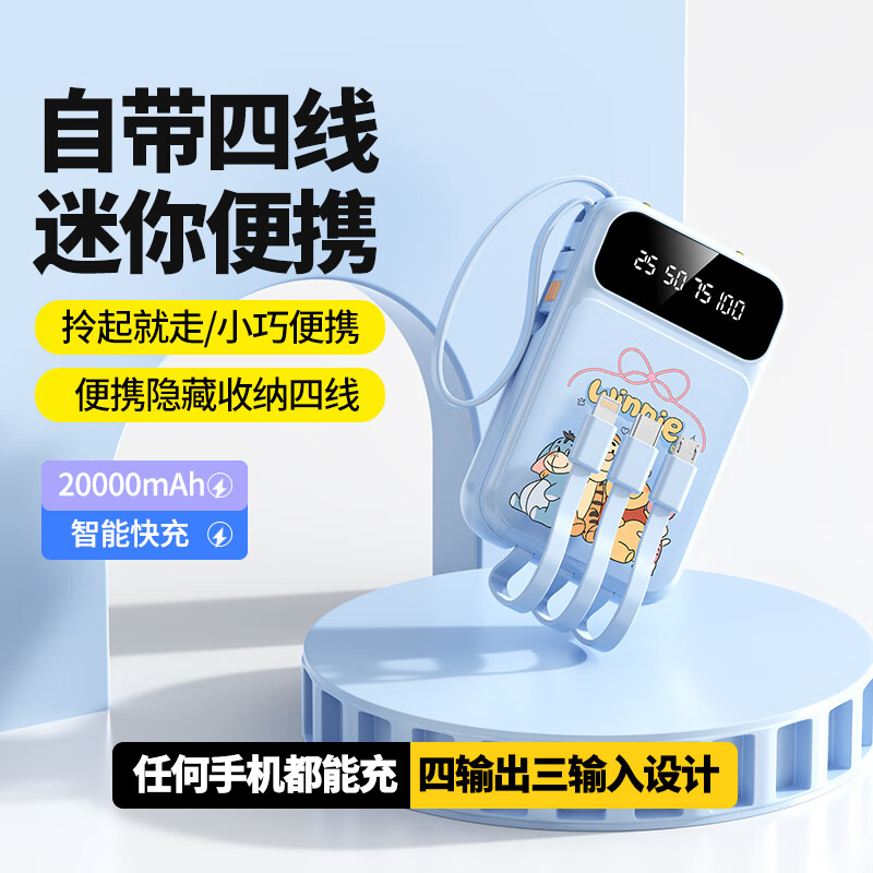 ¥29.9 倍特源自带4线可爱充电宝大容量超薄小巧卡通移动电源快充适用苹果华为小米OPPOvivo安卓手机20000毫安时 浅蓝家族【自带线+国产电芯】提速999% 59.9
