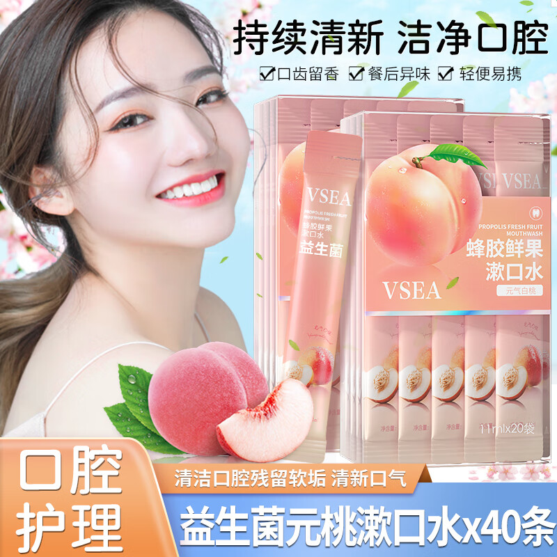 ¥9.9 VSEA果香漱口水一次性条装便携式清新口气口腔护理温和清洁牙齿男女士 11ml 40条 果香清新漱口水 29.9