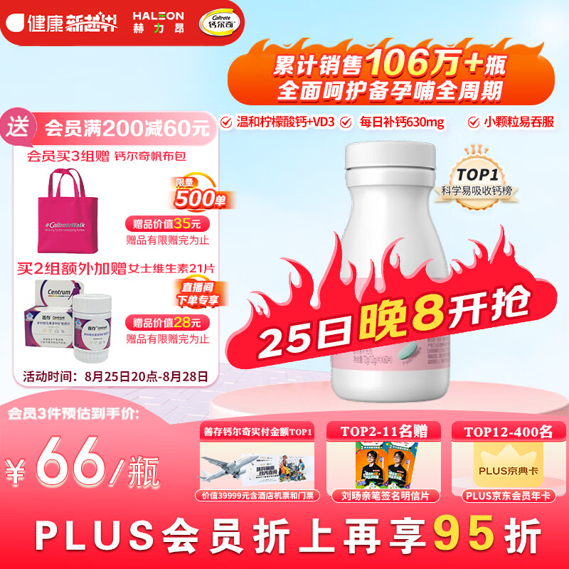 ¥89 钙尔奇孕妇钙片 柠檬酸钙片成人 备孕+孕早+孕中+孕晚+哺乳期钙片乳母型 补钙维生素D3钙片孕妇专用 60片 109