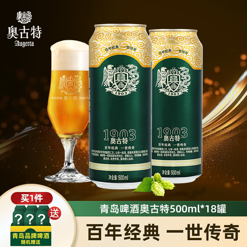 ¥169 奥古特(Augerta)青岛啤酒奥古特啤酒啤酒青岛12度 500mL 18罐 整箱装 189