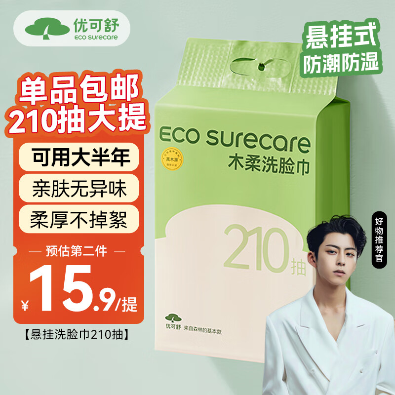 ¥14.9 优可舒悬挂式洗脸巾210抽 一次性洗脸巾绵柔巾加大加厚擦脸巾洗面毛巾 16.9