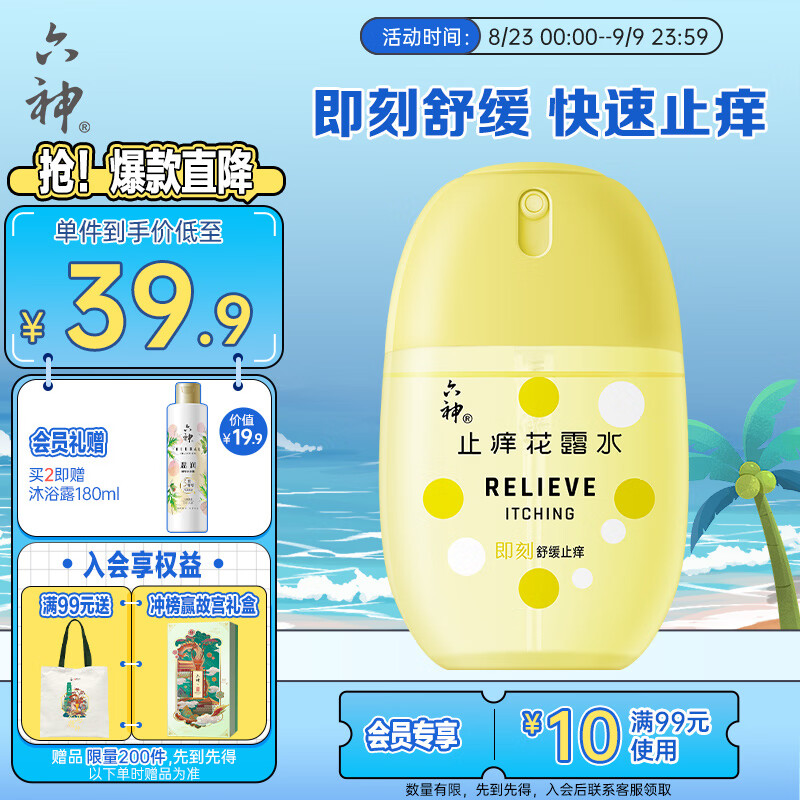 ¥39.9 六神【随身止痒蛋】止痒喷雾50ml*1(水生花香 舒缓止痒 花露水) 43.9