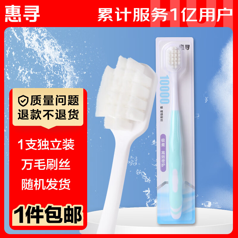 ¥2.99 惠寻【万单爆款】舒适柔护净白牙刷 颜色随机发货 万毛牙刷 1支 4.99