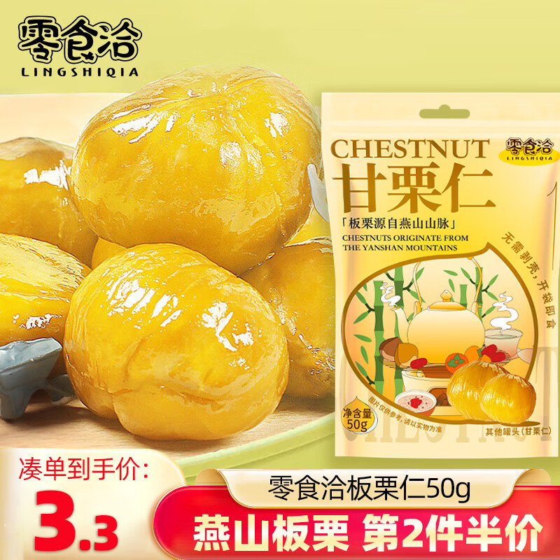 ¥4.9 零食洽板栗仁休闲即食零食甘栗仁每日坚果炒货甜油栗仁50g/袋 5.9