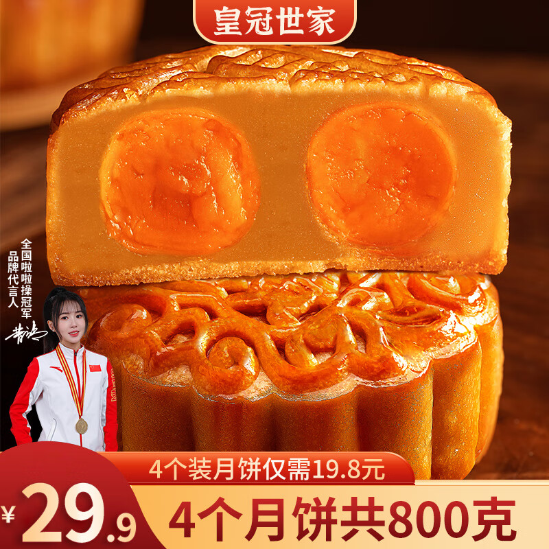 ¥26.9 皇冠世家中秋节广式双黄白莲蓉味咸蛋黄月饼送礼盒装老式散装传统礼品送人 纸盒散装(100克*8个) 29.9