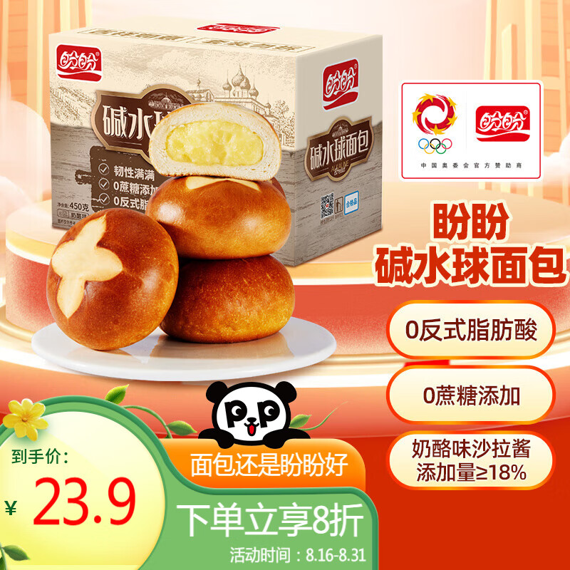 ¥18.9 盼盼 碱水面包 夹心欧包面包糕点早餐代餐0蔗糖饱腹健身轻食 450g/箱 24.9