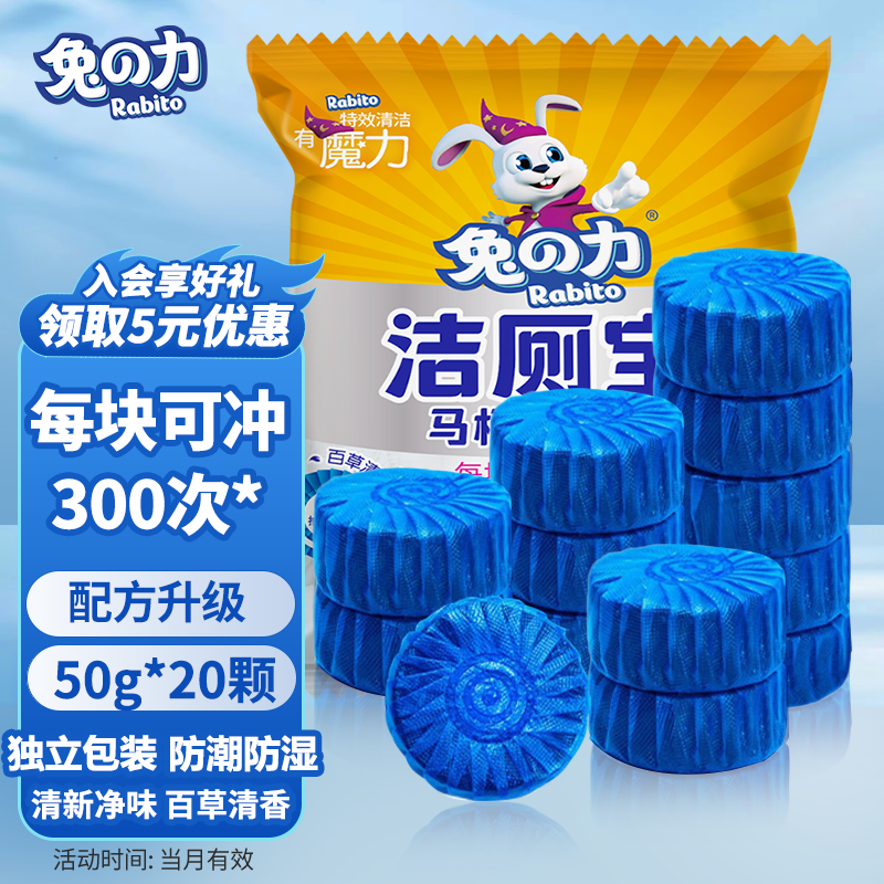 ¥24.9 兔の力洁厕灵马桶清洁剂 蓝泡泡洁厕宝除垢去异味 洁厕宝 50g 20个 【配方升级】 28.9
